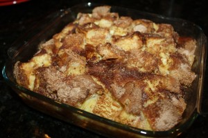 Tammy Winters– This recipe is special because it comes from my grandmother. Whenever we had extended family over for a big breakfast (like on a holiday) she would make this so that we could all eat at the same time (otherwise we would all be waiting for individual pieces of french toast).   We all thought it was a big deal to make so we never really asked her to make it, we just gratefully ate it up when she did.  Then someone finally had the guts to ask for the recipe.  When we realized how easy it was, (Poor Grandma!) we asked for it all the time!  It didnt matter if it was breakfast, lunch or dinner.