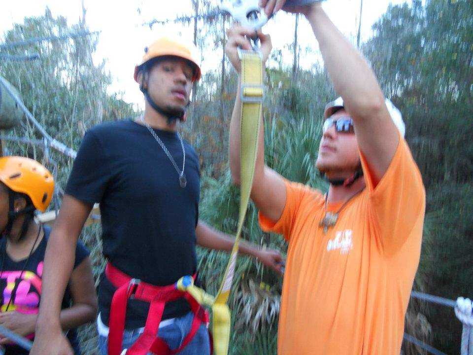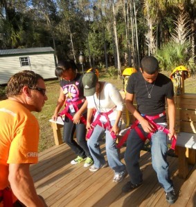 Before we went on our adventure, Carl and Dave gave us the run down. We were going on Florida’s longest, fastest, and highest zipline. It is also the longest tour, and double layered, as well. The overall course has 8 ziplines ranging from 225 – 950 feet long, upwards of 65 feet off the ground; dual racing zips; double layered zips; and three suspension bridges totaling more than 300 feet. In total, we were looking at almost a mile of zipping cables and the tour would be about three hours long. That’s right, a three hour tour!! (yea! Where have I heard that before?!)